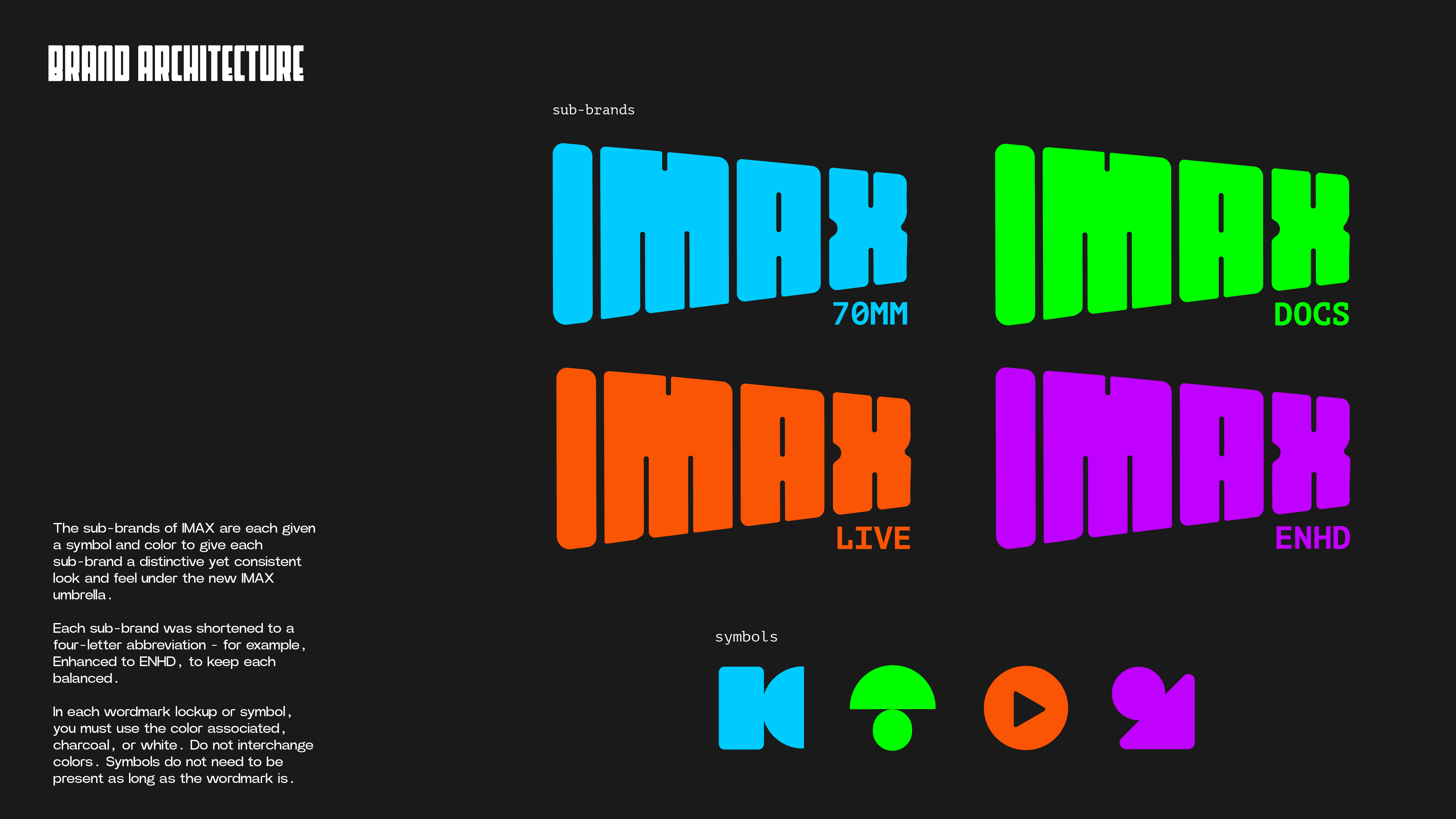 The ask: IMAX needed a brand identity rebrand, and I created a design system that distinguished new and existing IMAX experiences and products, paving the way for IMAX’s future experiences.