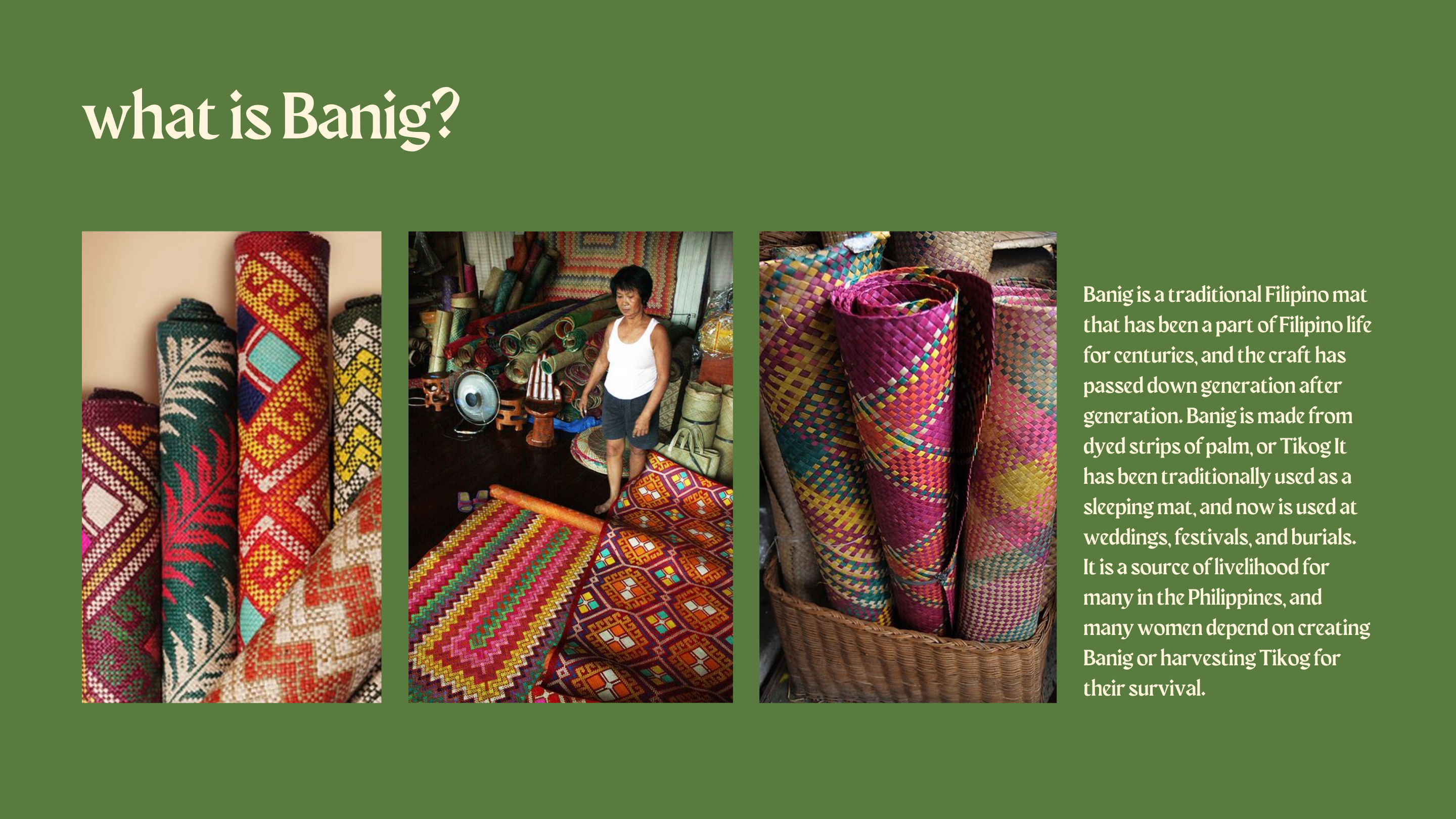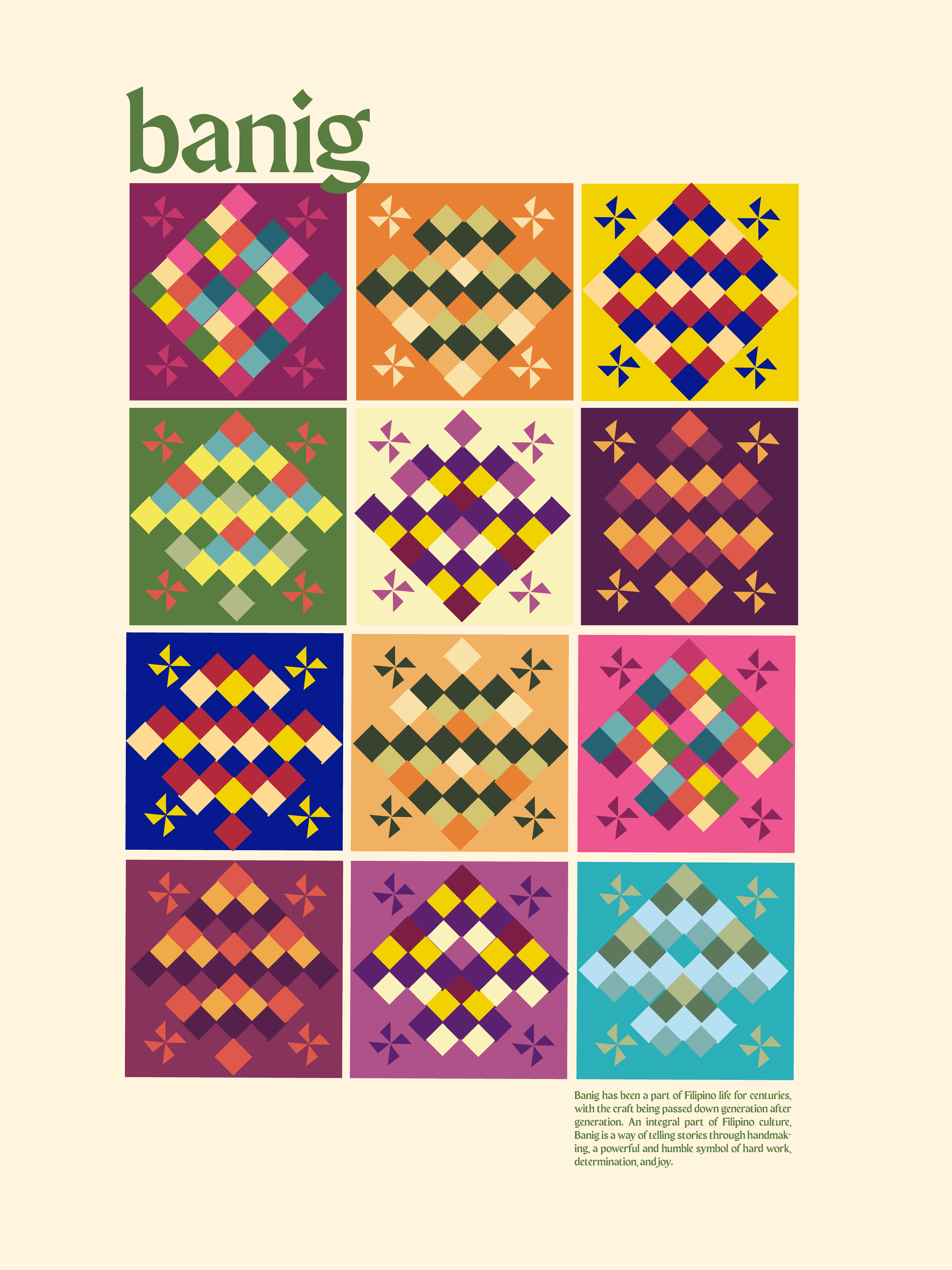 Below are the posters I created, with the left and middle posters explaining the significance of the Banig, and the right, an exploration for advertising.